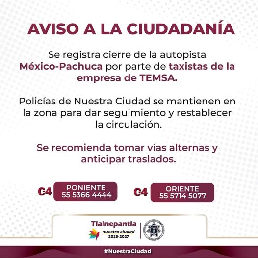 Para evitar el colapso del tramo afectado, las autoridades recomiendan a los conductores utilizar rutas alternativas como la Vía Morelos o la autopista Urbana Ciervo de la Nación. Se prevé que la carga vehicular continúe incrementándose conforme avance la mañana, por lo que se exhorta a la población a tomar previsiones adicionales en sus tiempos de traslado hacia la capital del país.